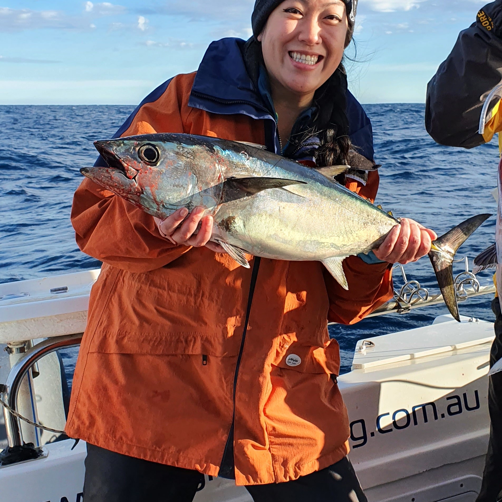 Last weekend Toby’s dad took us deep sea tuna fishing with a fishing charter in Portland, Vic. My fishing experience is fairly limited but thankfully the charter set up all the rods for us, so all we had to do was wait until a tuna caught on and we take turns reeling them in. Luckily mine didn’t put up too much of a fight but Toby’s gave him a good workout. There was a limit of two tuna per person. We drove around for hours and caught some here and there, but alas we were two fish short of our max. We were on the boat for roughly 6 hours total. We took 4 fish home in total, ranging from 10-15kg (good thing Toby’s parents have a big freezer back on the farm). We youtube’d how to fillet a tuna and we filleted one tuna that night and have been eating it ever since. I’ve been scrambling to find some good tuna recipes and came upon some asian-inspired ones and played around with them. This recipe is the result of it! (I also used up some tuna in the salmon chowder recipe and subbed out the fish type – turned out delicious!)