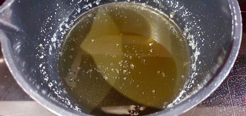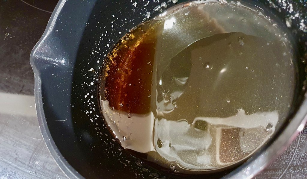 In a small saucepan (ideally one with a white base so you can see the colour changes easily – we just moved onto the farm and unfortunately there are only black base pots here for the photo), make the caramel by combining the sugar with water over MEDIUM heat and swirl the mixture around until the sugar has dissolved. Let the mixture simmer until it turns into an amber caramel colour (15-20mins). Do NOT stir during this process. Gently swirl it to even out the colour changes if needed. Stirring will cause the sugar to stick to the sides of the pot and crystallize (like in the photos above – I didn’t learn about this until it was too late!). Don’t worry if you accidentally stir the mixture and get crystals (I do it all the time. I feel like I have an impulse to stir anything that’s been on the stove for a while). Your caramel will still turn out fine.
