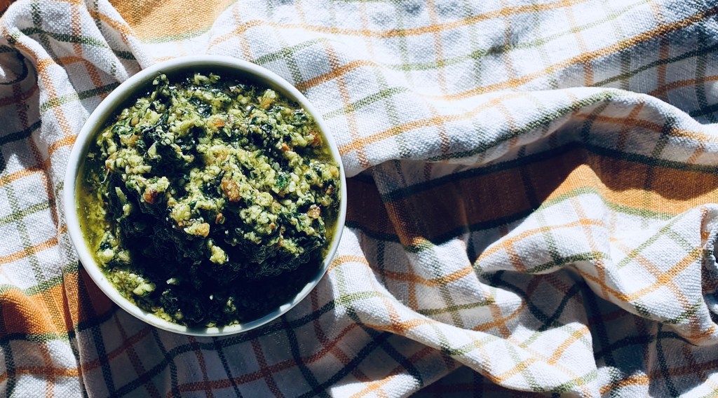 Of all the herbs out there, basil is my absolute favourite so it’s no surprise that I’m obsessed with pesto. I would have an entire veggie patch of just basil if I could, but sadly growing basil has always been my achilles heel when it came to gardening. Basil on its own is so bright and flavourful, best when paired with a bocconcini and sun dried tomato with some fresh ground black pepper in my opinion mmmm. It’s also great on top of a pizza or pasta to freshen it up. Pesto opens up a whole new ball game and is so versatile – you can use it as a rub, marinade, sauce, dip…etc. I love using it as a pizza sauce with some garlic and olive oil brushed onto the dough or stirred through a creamy pasta sauce for a quick dinner. Ohh boy I could go on forever on all the ways I would use pesto. I’ll probably ramble on more about my love of pesto in future posts on how to use it (of which I’m sure there will be many) so keep your eyes peeled for pesto recipes! Here is my version of a classic basil pesto. It’s insanely easy and you don’t even need to do any chopping. If you can press a button, you can make pesto. Presto pesto!