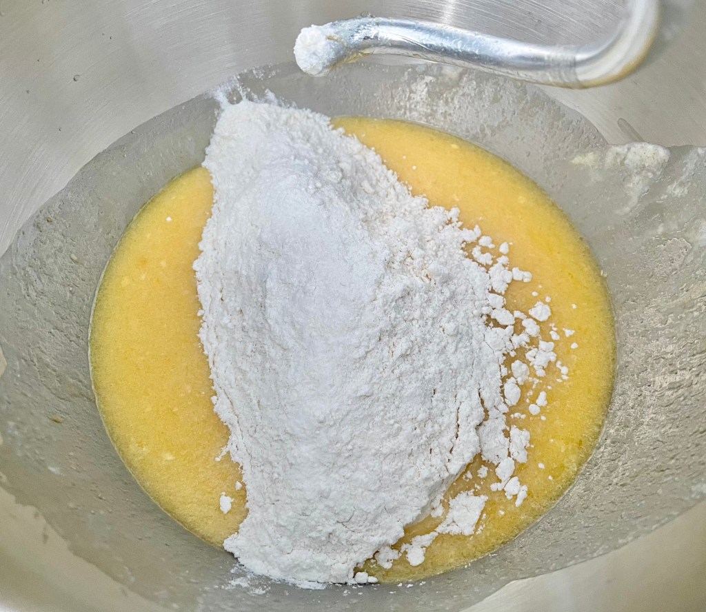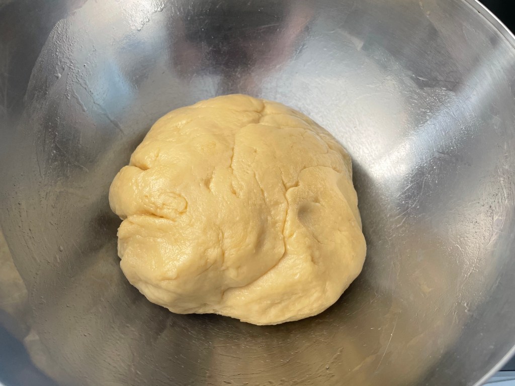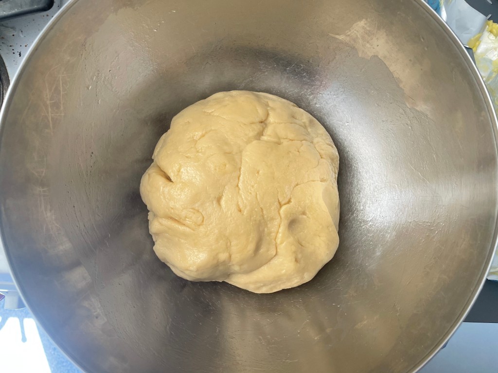 - Mix in eggs, butter, salt and sugar to the bowl. Add the flour in gradually until you get a smooth dough and knead it into a ball. Place the dough ball in a lightly greased bowl covered with a tea towel and set aside in a warm place until doubled in size (~1hr). (Don’t have a warm place? Click here to see how I proof my dough in the oven).