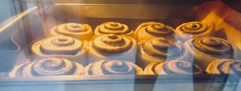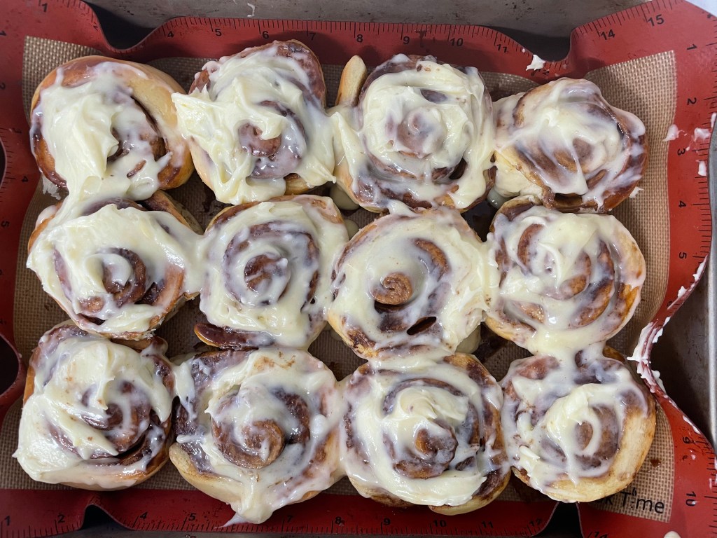 - Finish it off: Once the rolls are cooked, flip each roll upside down so the gooey cinnamon filling re-coats the inside. Spoon any extra melted filling over the buns. While the rolls are still hot, spread half the icing over the rolls. Once rolls are cooled, spread the other half of the icing over them. Serve warm. Enjoy!