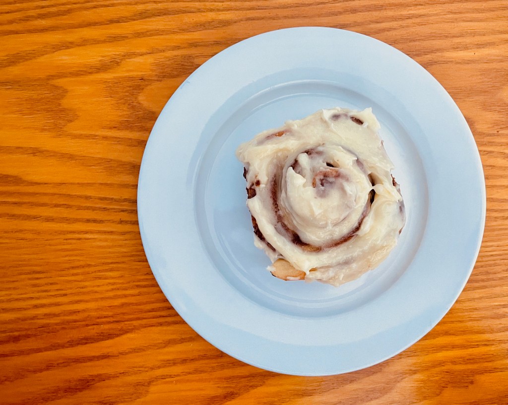 Finish it off: Once the rolls are cooked, flip each roll upside down so the gooey cinnamon filling re-coats the inside. Spoon any extra melted filling over the buns. While the rolls are still hot, spread half the icing over the rolls. Once rolls are cooled, spread the other half of the icing over them. Serve warm. Enjoy!