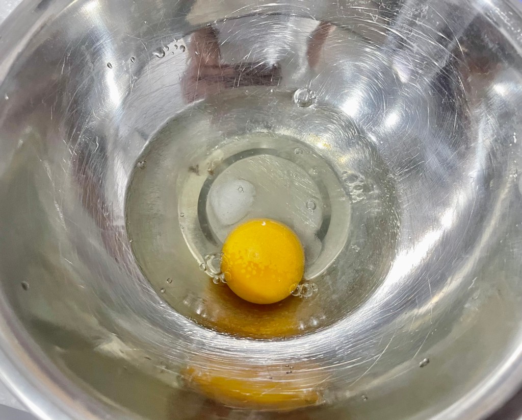 - In a mixing bowl beat together the egg, salt and 1/3 cup water.