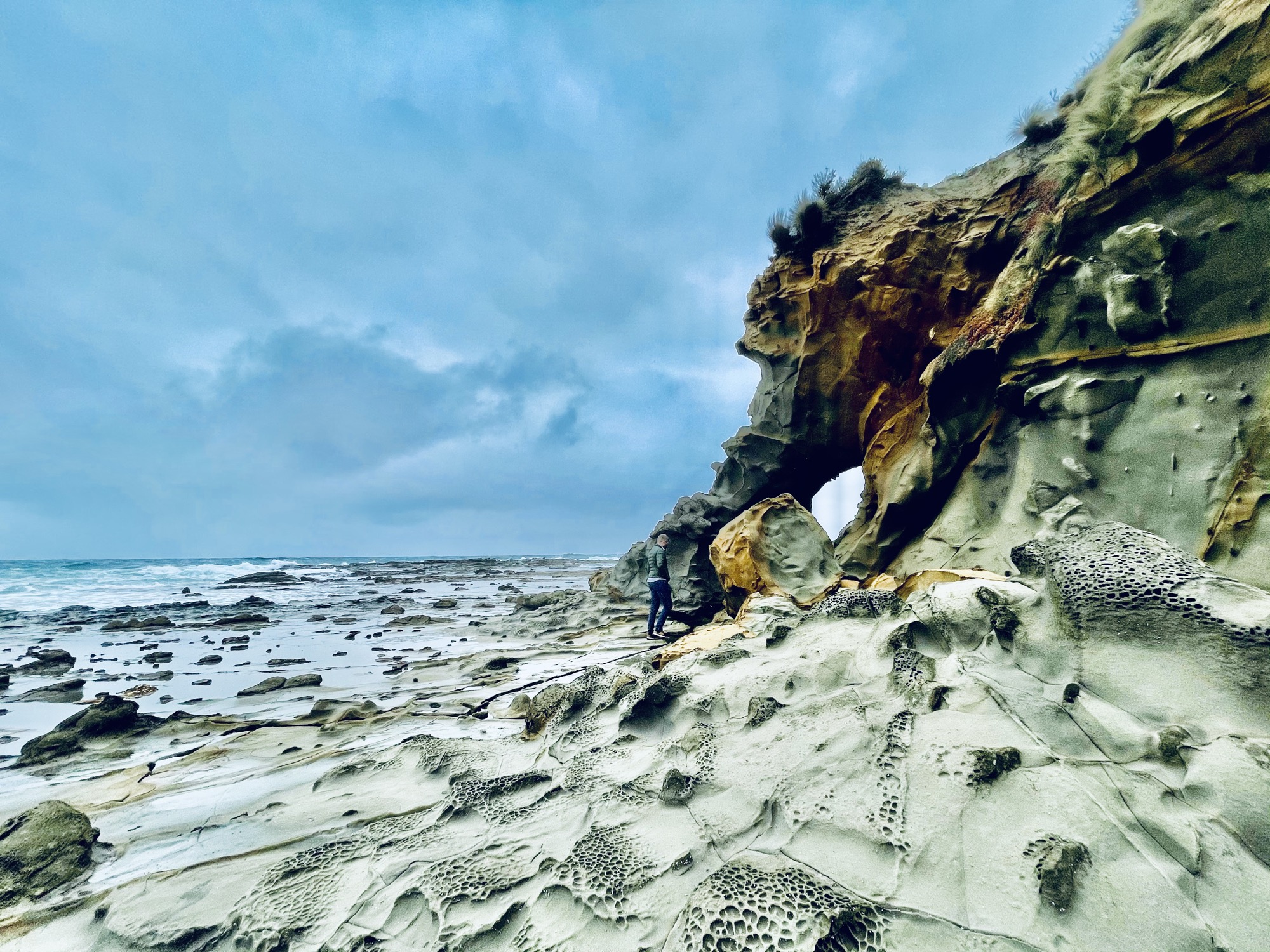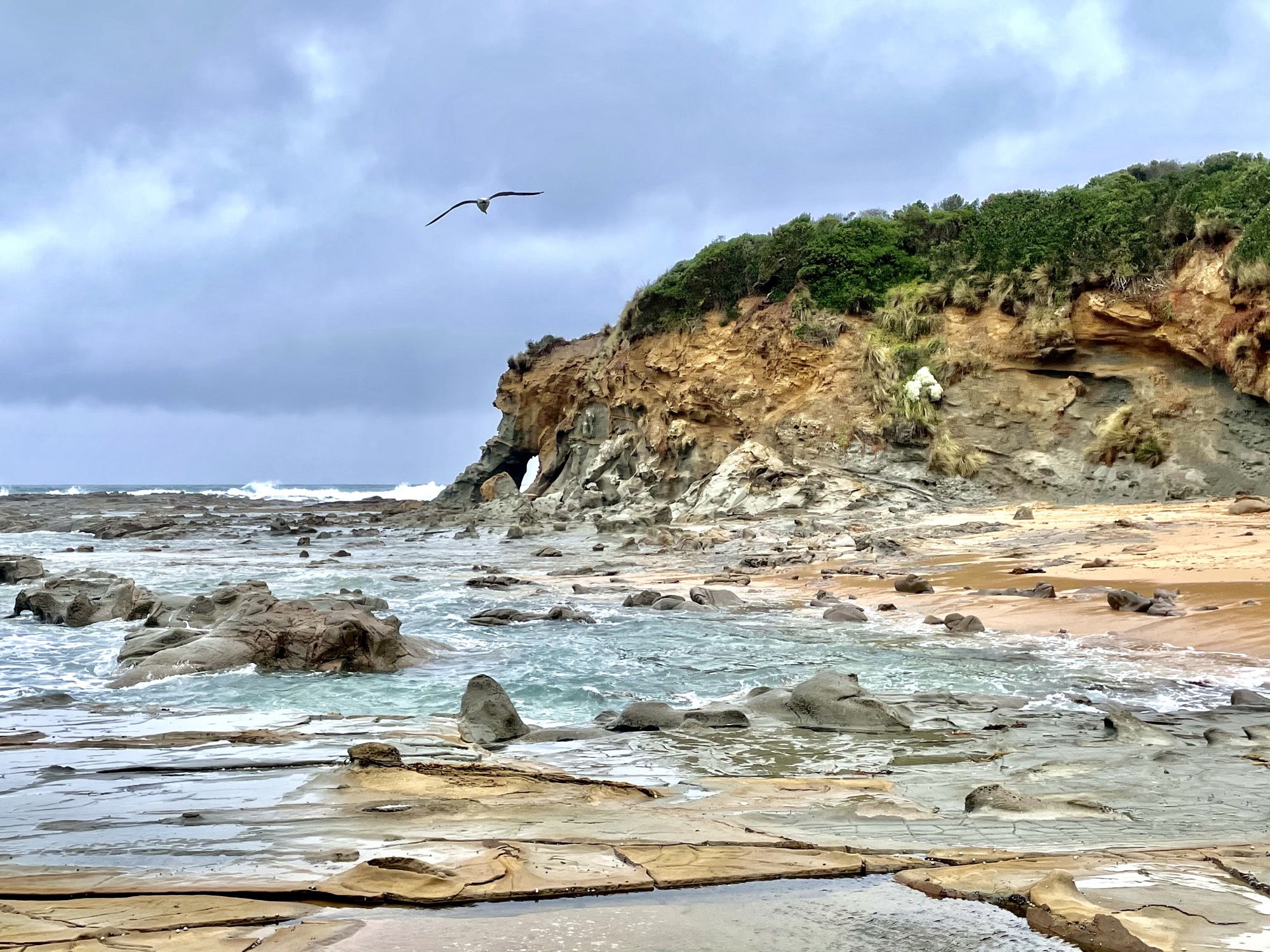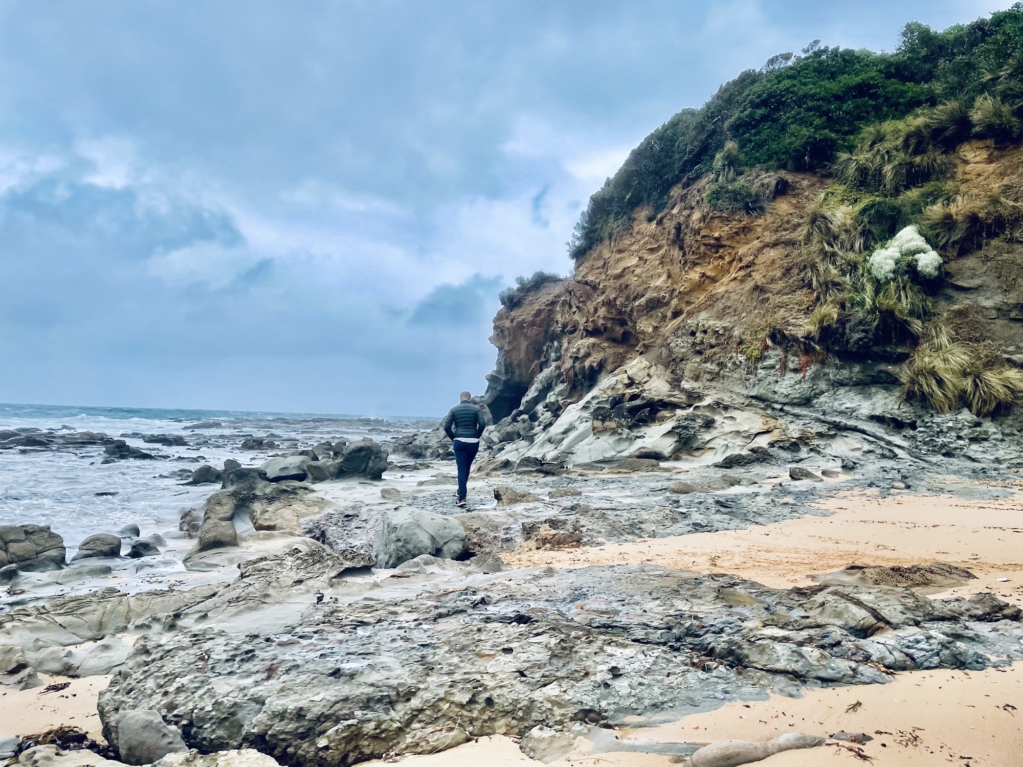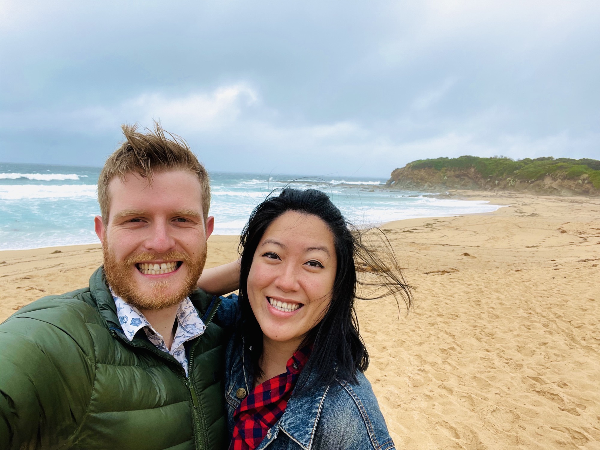 Toby came here a couple times when he was young and he wanted to do a quick stopover on our way to Wilson’s Promontory. We almost didn’t stop because the weather wasn’t the greatest, but I’m so glad we did! At first glance it was like any other beach, but then we came upon these really cool rock formations by the water. It made a pretty good photo-op especially with the gloomy weather.