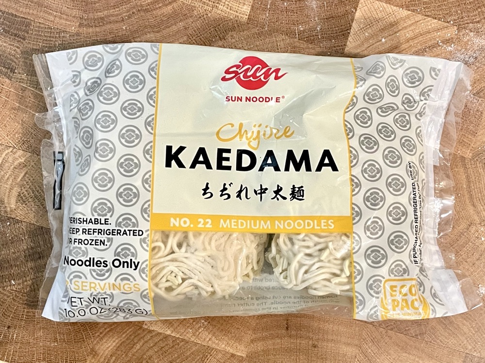 My favourite ramen noodles are made from Sun Noodle and they come in medium or thick noodles (see picture). This one package has 2 servings – it doesn’t seem like much, but it definitely expands when cooking!