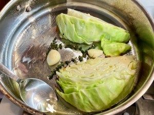 Roasted Cabbage with Pickled Mustard Seeds and a Parsley Cream Sauce (a Dominique Crenn recipe)