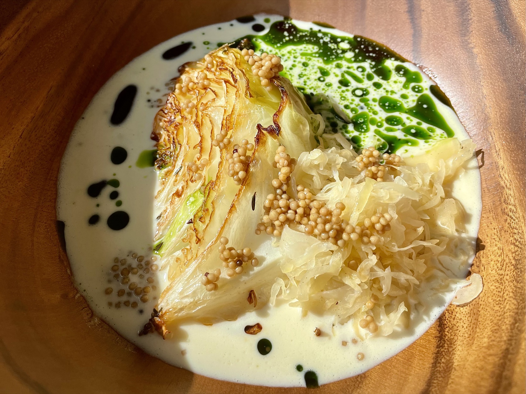Roasted Cabbage with Pickled Mustard Seeds and a Parsley Cream Sauce (a Dominique Crenn recipe)