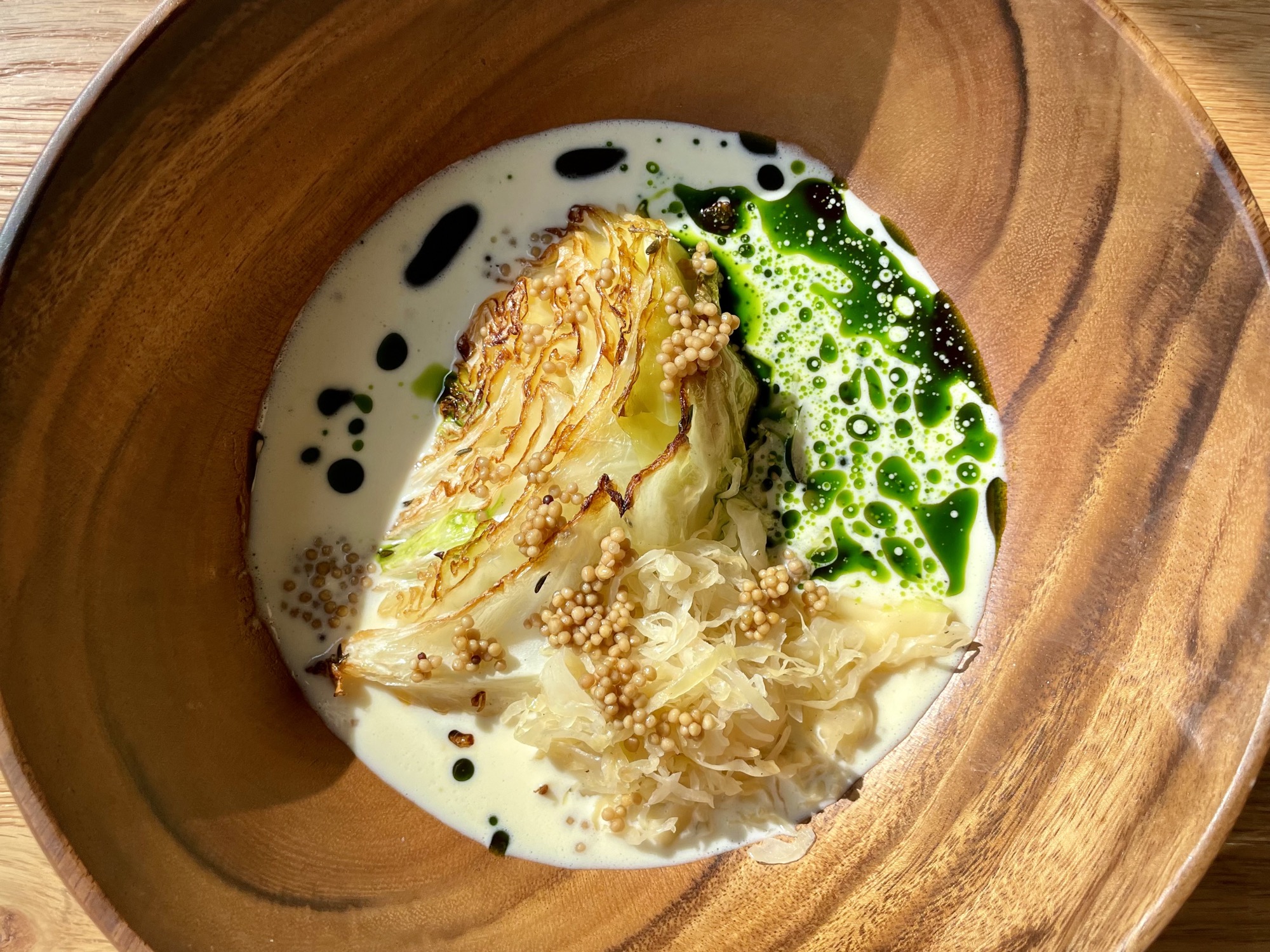 Roasted Cabbage with Pickled Mustard Seeds and a Parsley Cream Sauce (a Dominique Crenn recipe)