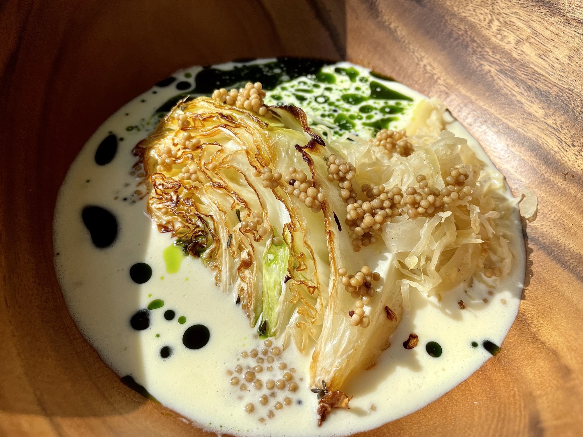 Roasted Cabbage with Pickled Mustard Seeds and a Parsley Cream Sauce (a Dominique Crenn recipe)