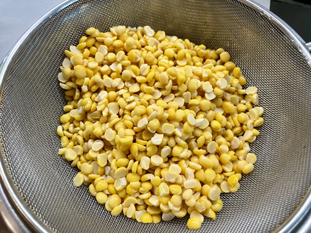 - Rinse the chana dal/yellow split lentils and let it soak in water for at least 1 hour, then strain and set aside.