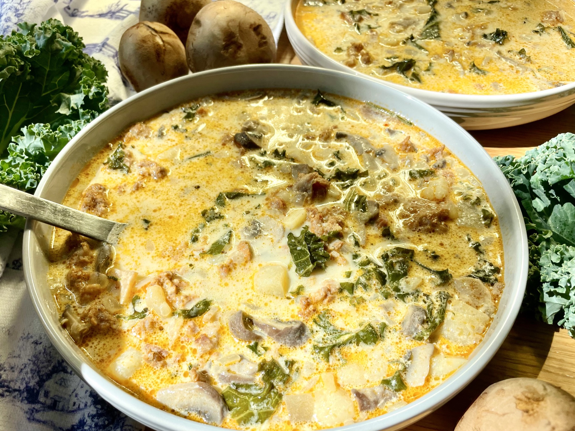 Zuppa Toscana – Creamy Sausage, Kale, Bacon, Mushroom Soup