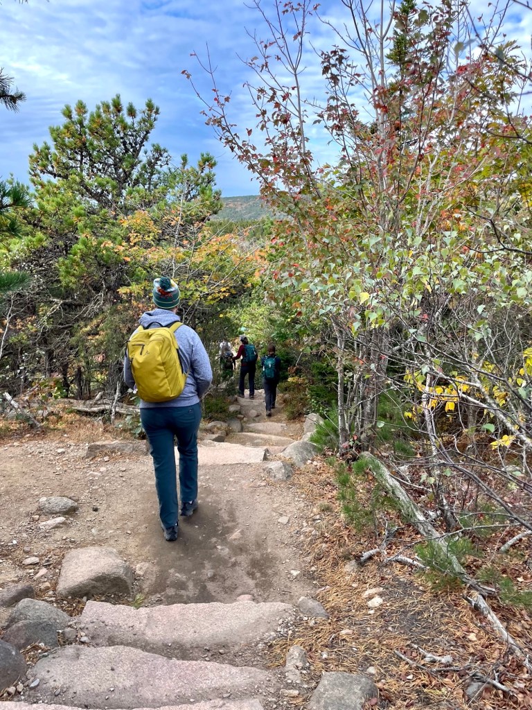 The closest parking lot is at Sands Beach, which is only a short 5 minute walk to the start of the trail. There’s roughly enough spaces for about 100 cars, which sounds like a lot, but by the time we arrived at 7am, the lot was already 70% full. We started the hike at 8:15am (after visiting Thunder Hole) and by the time we finished around 10am, the parking lot was completely full and there was an incredibly long line of cars parked along Park Loop Road and many people were walking 20 mins+ from their car just to get to the start of the trail. There were also park rangers standing at the entrance to stop people from going in, so you can’t even circle the lot to wait for a spot to open up. Therefore, try to get to Sands Beach before 7am if you’re visiting in peak season like us and driving a car.