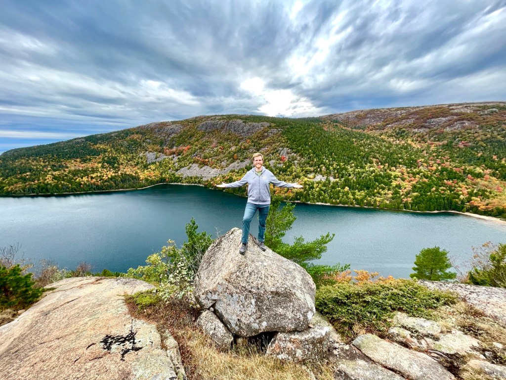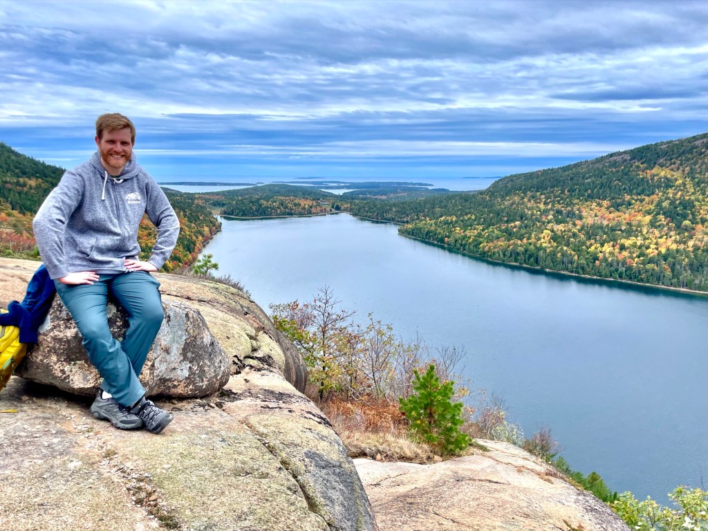 So many trails around Jordan Pond intersect each other so you can mix and match and make up your own trail as you like. The most popular mix of trails is the Jordan Cliffs + South Bubble + Jordan Path trail. You get the best elevated views of the Jordan Pond from the Jordan Cliffs Trail, with the iconic panoramic scenery of the Bubbles Trail/South Bubble Summit, and the serene easy flat water-side trail of the Jordan Pond Path. This combination of paths is the hike that we chose to do and is what I’ll focus on in detail for this post. 😊