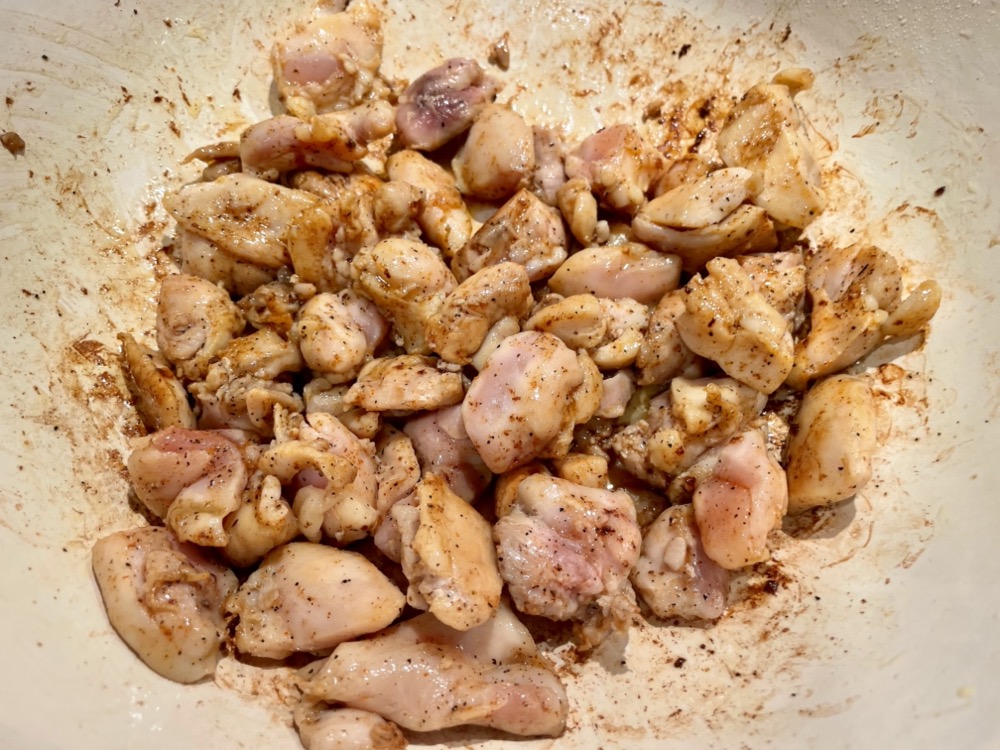 1. In a small mixing bowl, mix the diced chicken with 1/2 Tbsp of Cajun seasoning and let it marinate until ready to use.