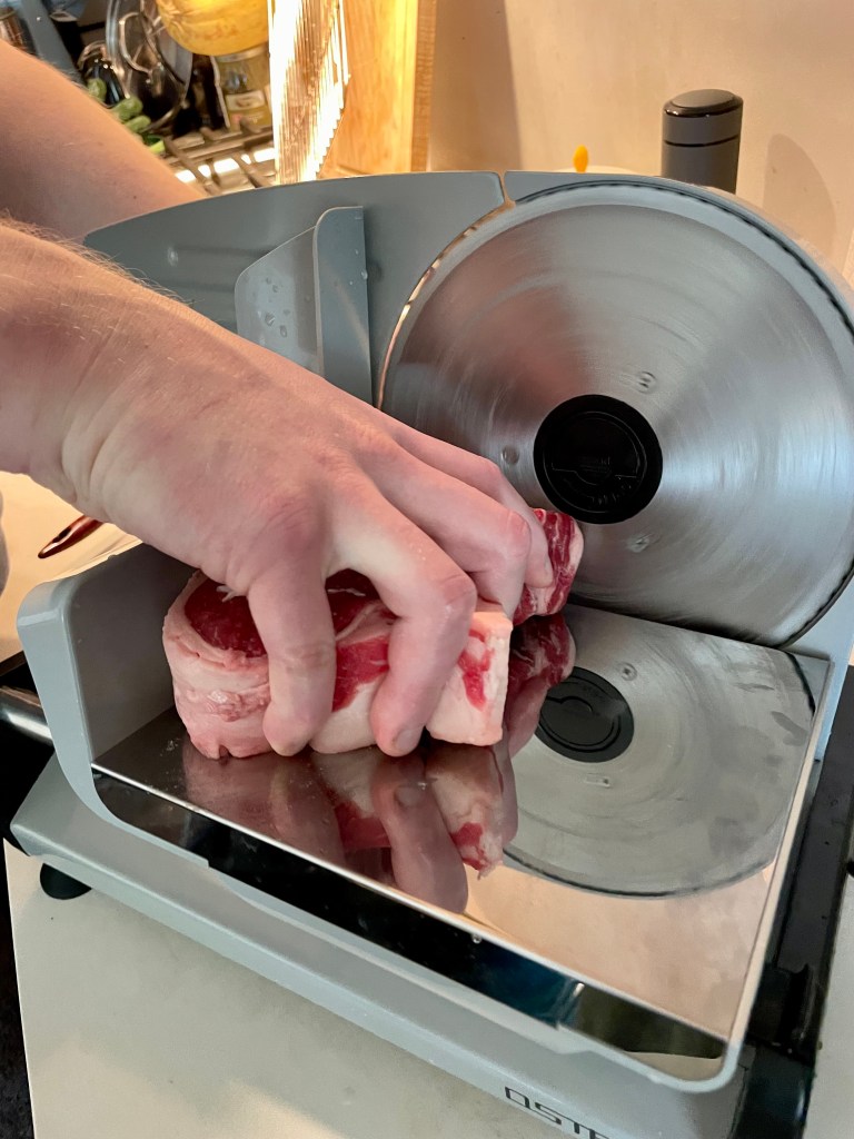 • 1 pound/500g rib eye steak, sliced as thin as possible