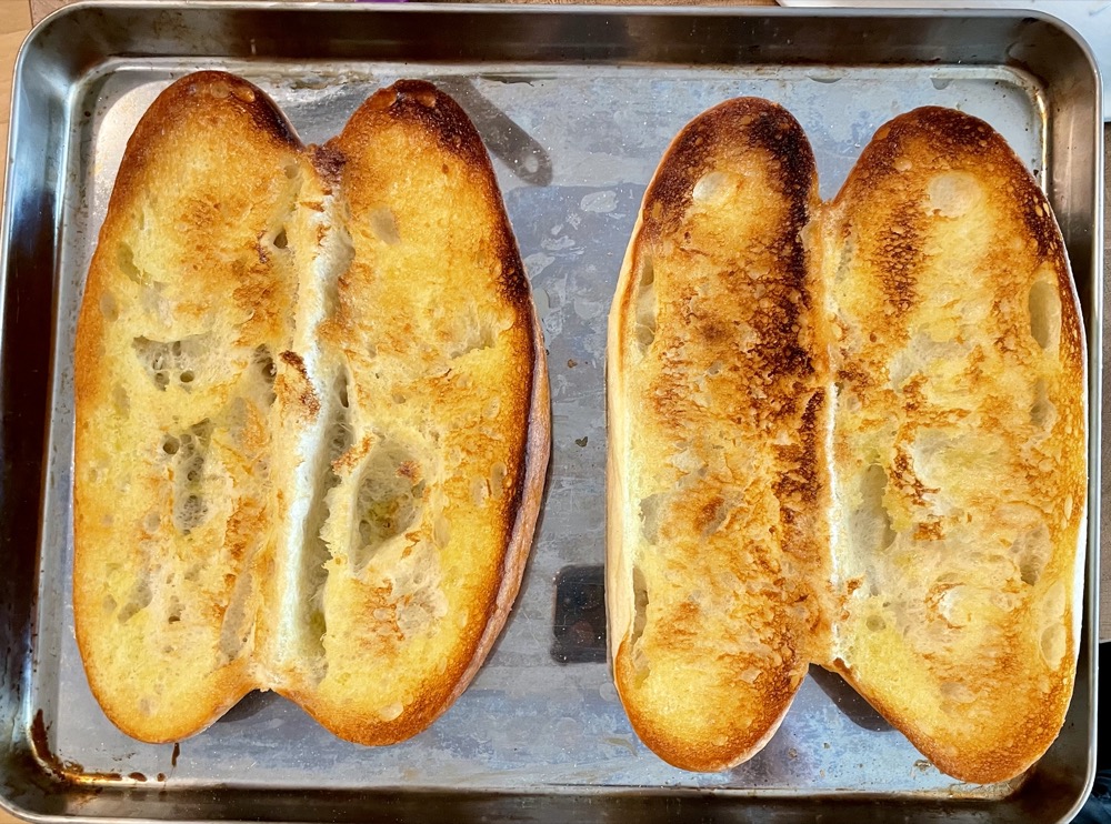 3. Optional step: Toast the bread: Slice each bread roll lengthways without fully cutting through, and lay open on a baking tray. Brush a small amount of olive oil onto the inside of the bread and toast in the oven on the BROIL setting for 1-2 minutes or until golden brown.