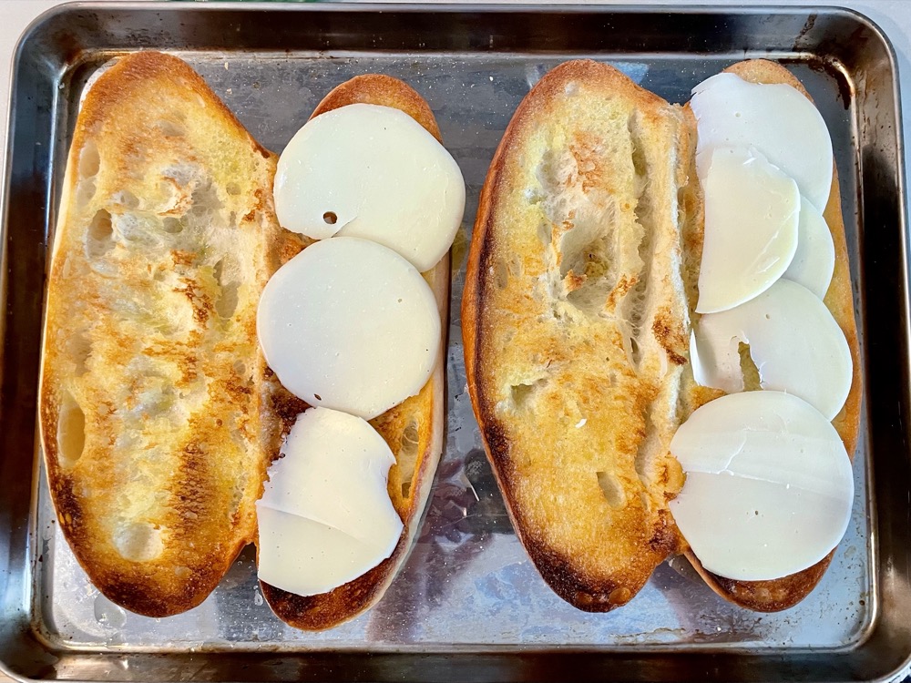 • Add 3 slices of provolone cheese to one side of each sandwich.