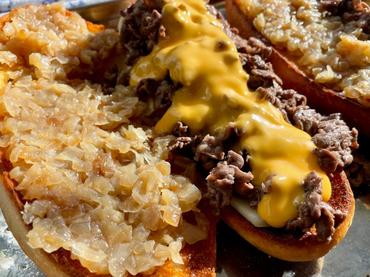 Onions are optional, but essential in my opinion. They’re usually cooked to just browned and softened with a bit of a bite. I prefer the cheesesteak joints that take it a little further and slightly caramelize the onions to add a bit of sweetness to a sandwich that’s full of cheese and salty meat. In my recipe below, the onions are slightly caramelized but feel free to cook it as much or as little as you like.