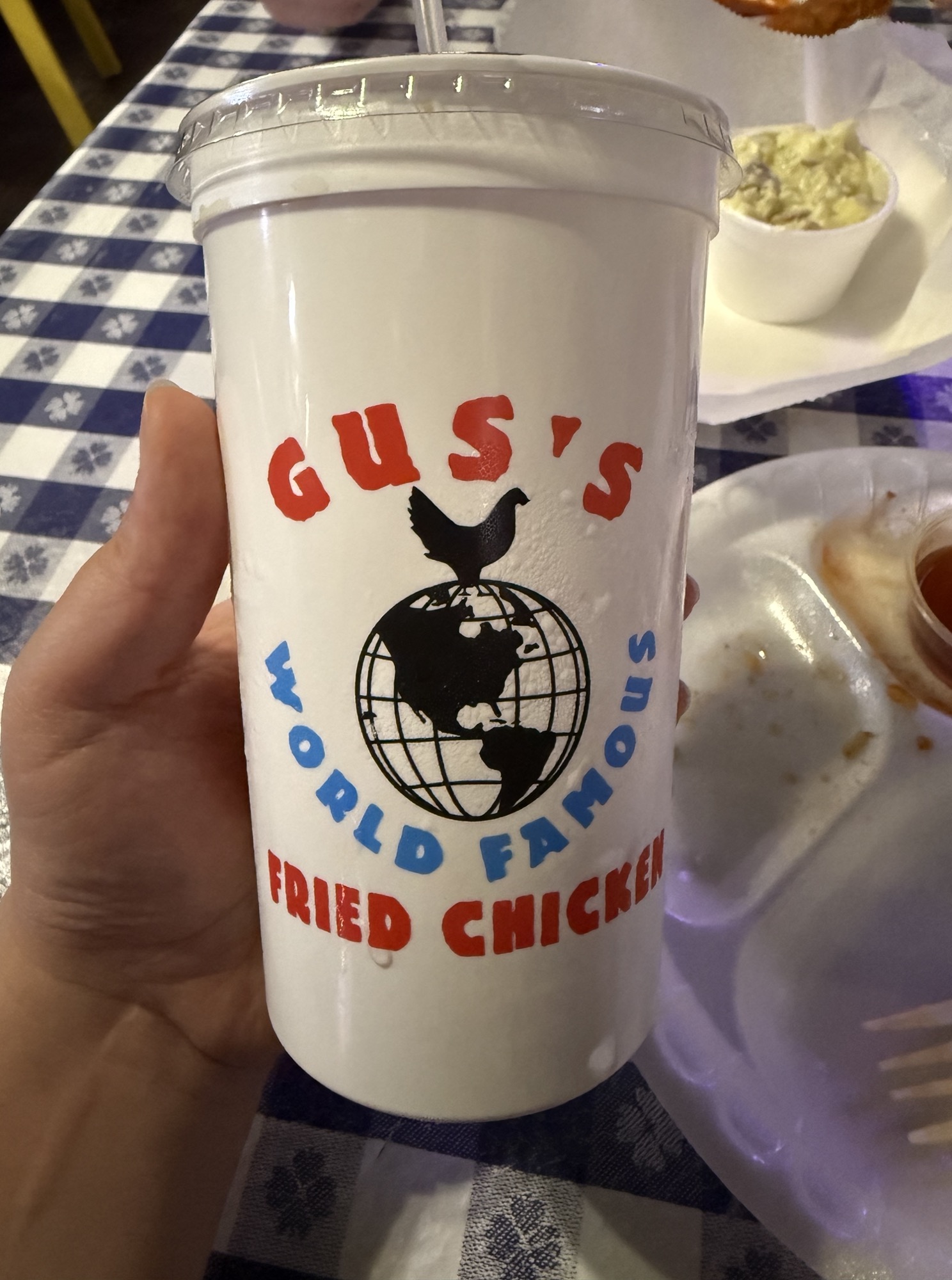 We arrived in Memphis pretty late in the evening and many restaurants were already closed, but we found Gus’s that was only a 2 minute walk from our hotel with a ton of positive Google reviews so off we went, excited to try our first fried chicken in the South!
