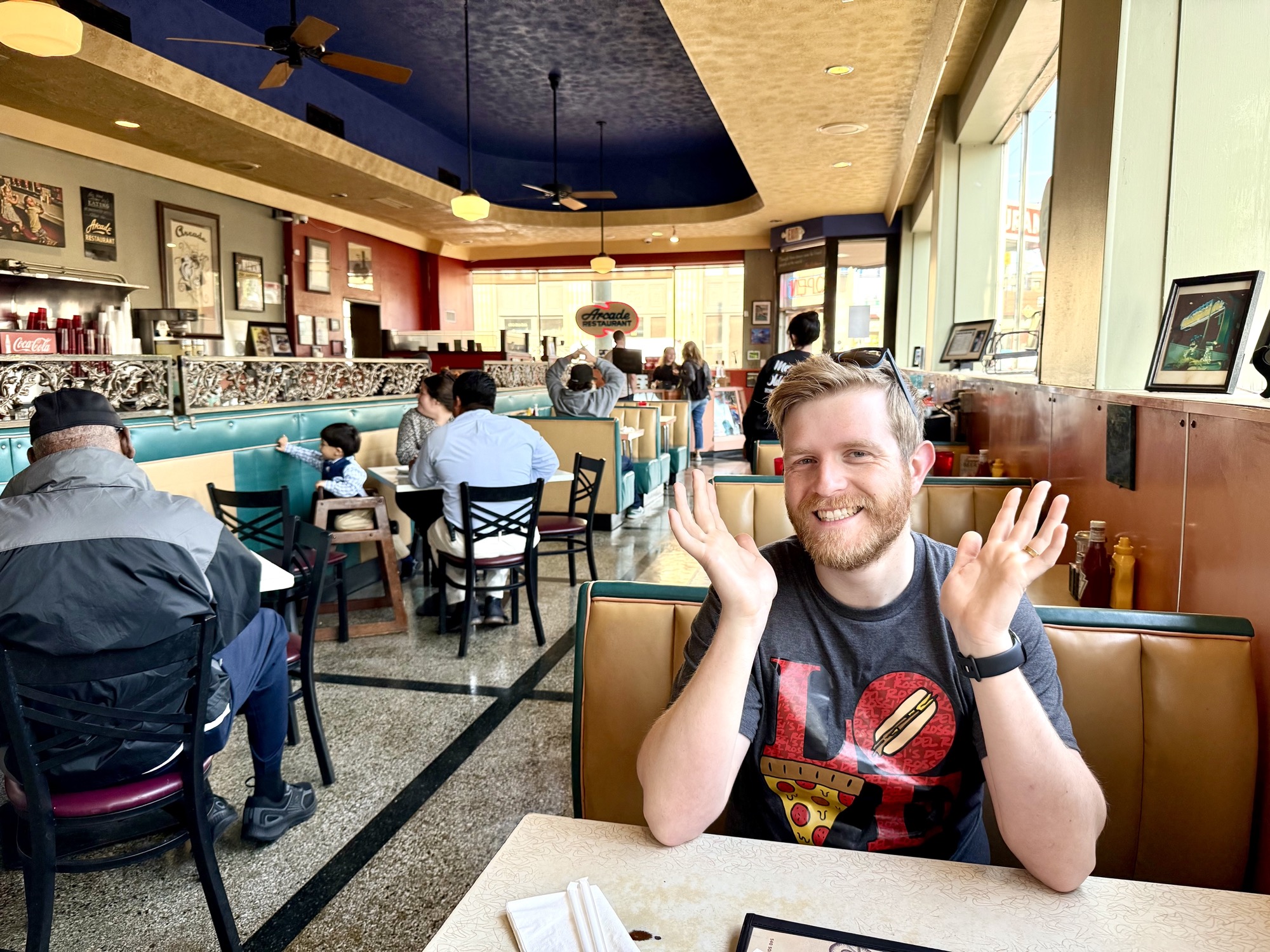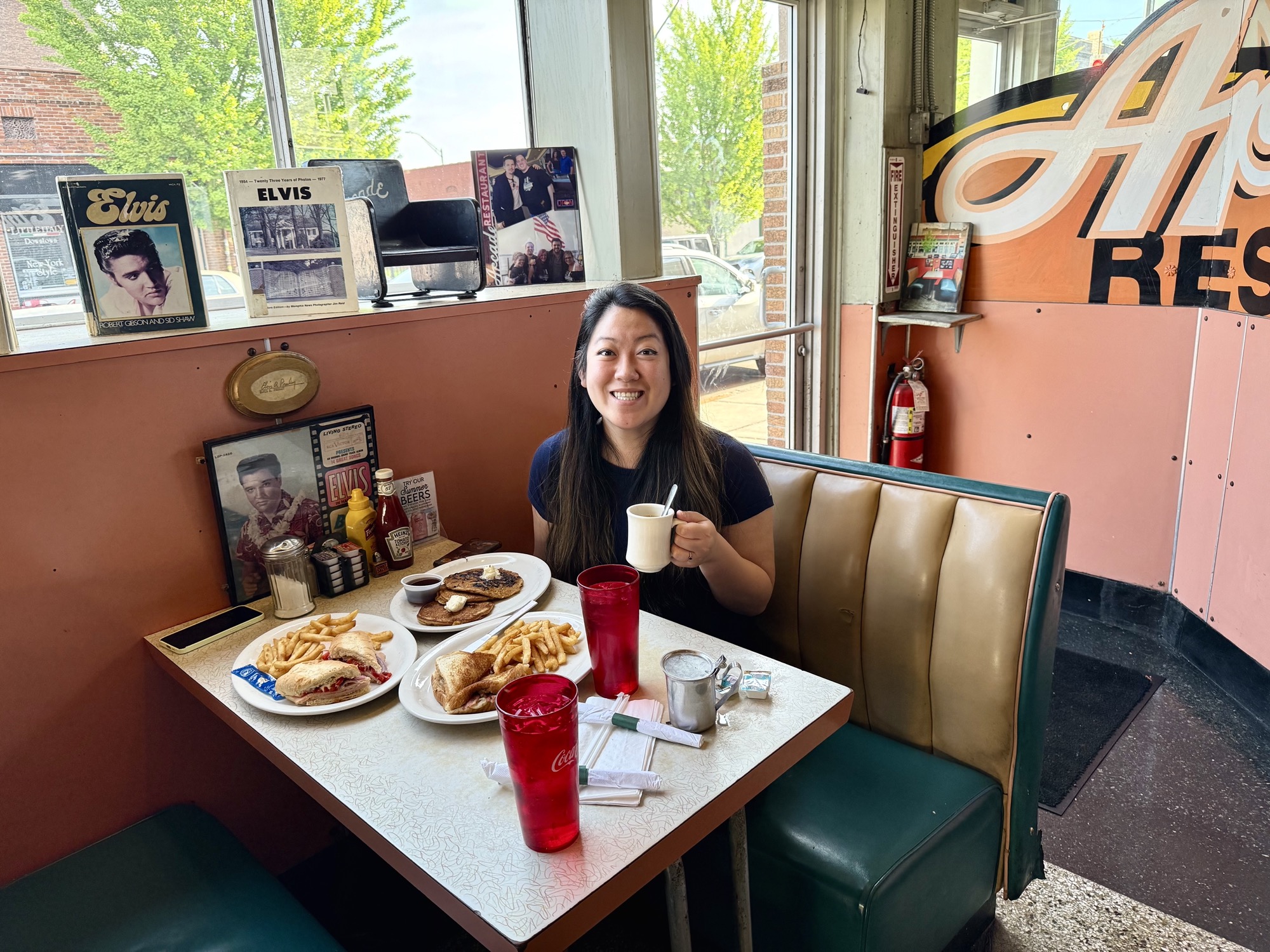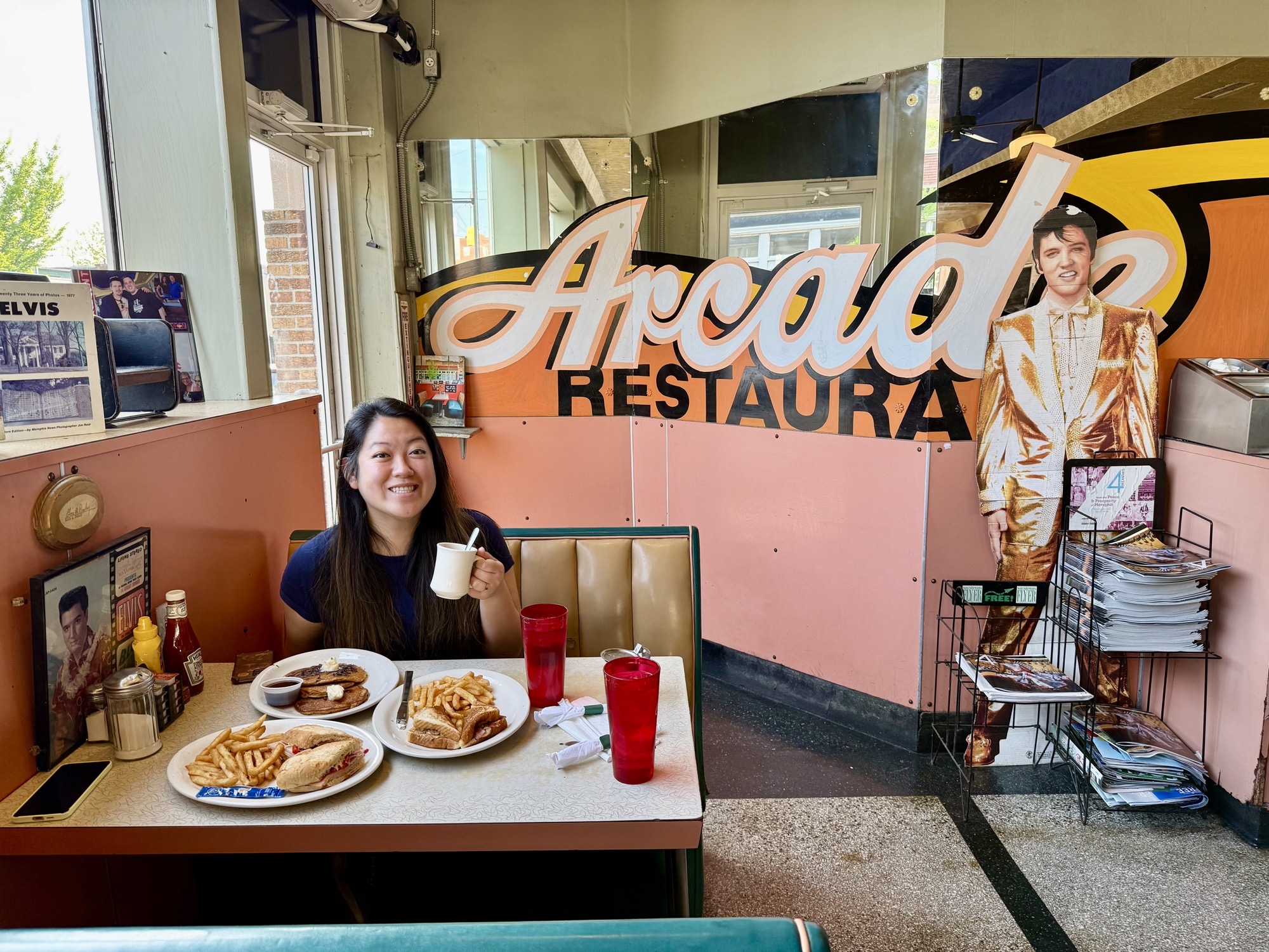 Even without the Elvis popularity, the Food Network listed the fried PB sandwich on their top 100 sandwiches in the US. We came here early in the morning for breakfast before our day at Graceland to experience this retro-style arcade and to ‘eat like The King’. We got to sit at the Elvis booth! The fried PB and banana sandwich tasted exactly as it sounds – two slices of bread with peanut butter and sliced banana in the middle, then pan-fried on the outside until golden. It was a fine sandwich, but not mind-blowing, something you could easily make at home. They had some pretty good sweet potato pancakes though and the smoked turkey and brie sandwich wasn’t half bad either!