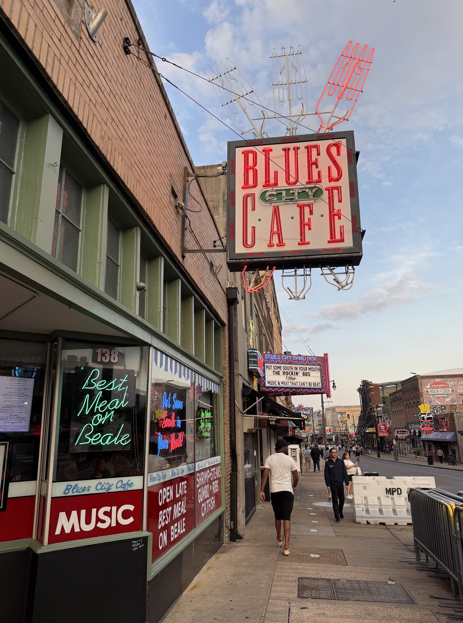 Come in the evening for the iconic experience when the neon lights are lit up and the live music pours out of these venues. We’ve asked multiple locals on what their favourite place is for live music, but it really depends on who’s playing that night and what kind of music you’re into. Some musicians will be seasoned pros, whereas others may just be starting out. Instead of seeking out a specific place, I’d recommend just taking a stroll down Beale Street with open ears and see which artists you enjoy. Although Beale Street is known as the “Home of the Blues”, we not only heard different styles of Jazz, but country music and even a mini orchestra band while walking down!