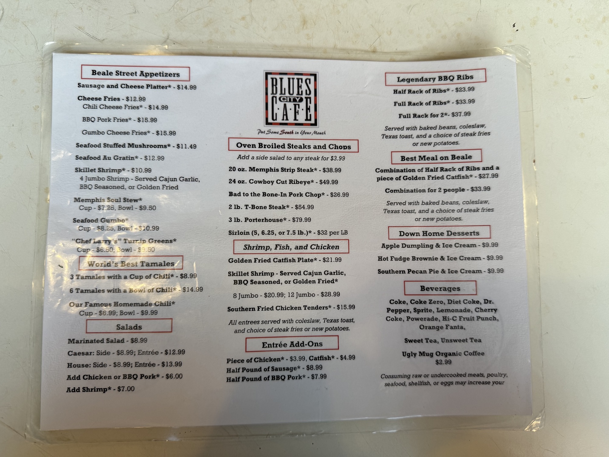 This restaurant was recommended by our tour guide for some good classic southern food. It is conveniently located right on Beale Street, perfect for grabbing dinner then strolling down the street for some live jazz music.