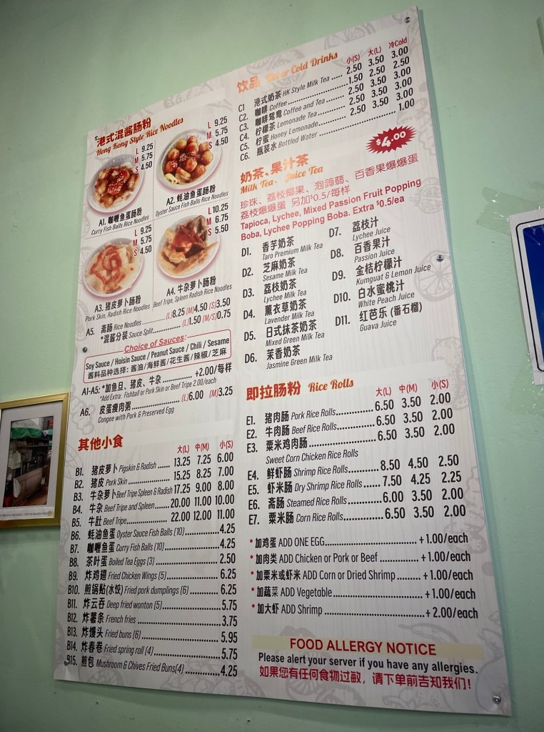 Mee Sum Cafe is known as an OG local breakfast spot, open at 5:30am every single day and serves up traditional Chinese dishes including dim sum. If you’re looking for more Zong Zi (glutinous rice dumplings wrapped in leaves) recommendations, Mee Sum Cafe has a reputation for some great ones, offering up 7 different fillings. Unfortunately when we went, they only had 3 of their 7 kinds left, with the most popular ones sold out 😔. We didn’t have time to eat here so I bought a few frozen ones to go and tried it at home – it was just okay. Perhaps the ones that were sold out are much more worthy of their reputation 🤷🏻♀️. I debated whether or not to include them in this post since all I had was their Zongzi and wasn’t blown away, but due to their long standing reputation as an old school breakfast spot, I decided to include it so the rest of you can make your own decision on Mee Sum Cafe and also as a place marker to remind me to go back 🙃.