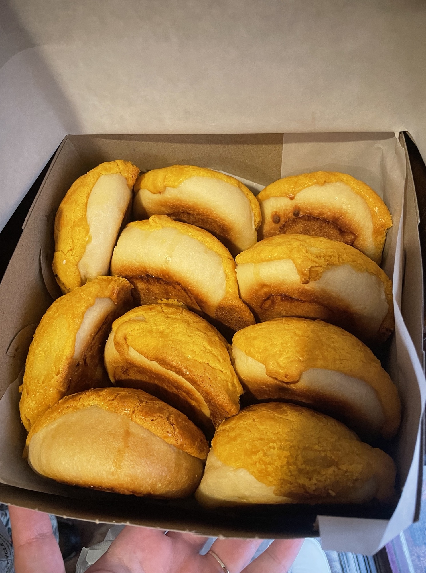 They also have a good pineapple bun (a misnomer that’s named for its flaky sweet crust that resembles a pineapple, but actually has no pineapple flavour at all) and mooncakes year-round in a few flavours (I don’t love mooncakes, so you can be the judge). Their large steam buns behind the counter are also pretty decent and are filled with savoury pork, egg, and Chinese sausage.
