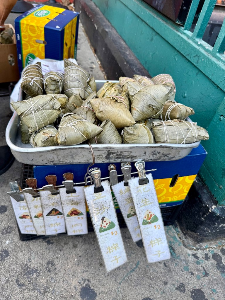 Like a character from a studio Ghibli movie, the beloved elderly Zongzi/Bah-chang lady has been selling zongzi for over 2 decades outside of the Grand Street subway station at the intersection of Grand and Christie. Her husband and daughter in law makes the zongzi and she sells them. You can hear her siren call of “Baaaaah-chang!” rain or shine.