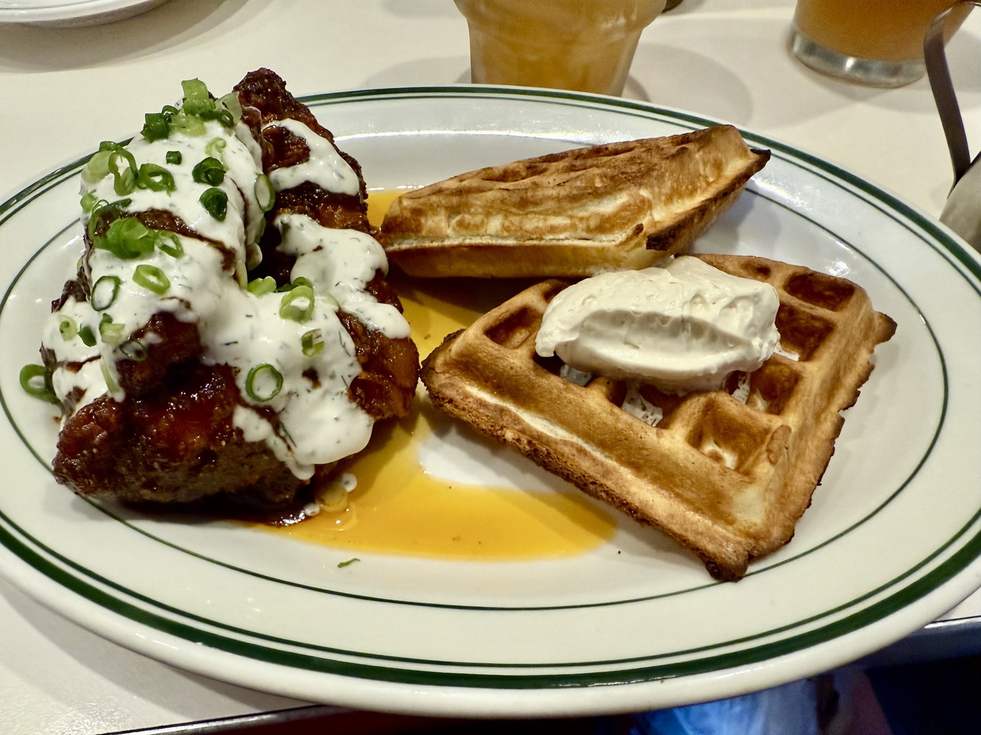 We ordered a few other things here that unfortunately fell short. We had their special of the day which was a asian/cumin fried chicken wings with waffles – way too much cumin and the waffles were dry, and the matcha/hojicha coffee cake which had good flavour, but unfortunately was also very dry.