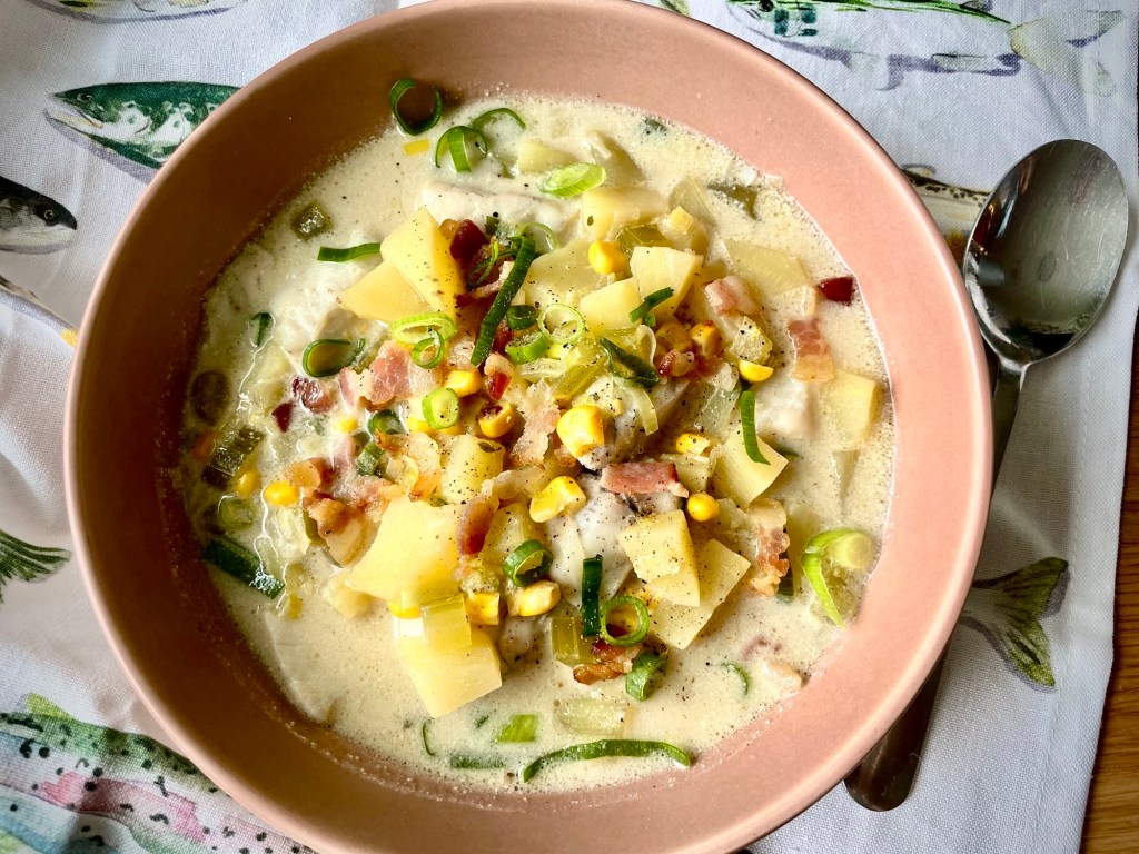 This Miso Fish Chowder tastes just like a clam chowder, but is thinner, more brothy, made with fish instead of clams and not as heavy. It’s made with white miso for an umami punch and packs in a ton of flavour.