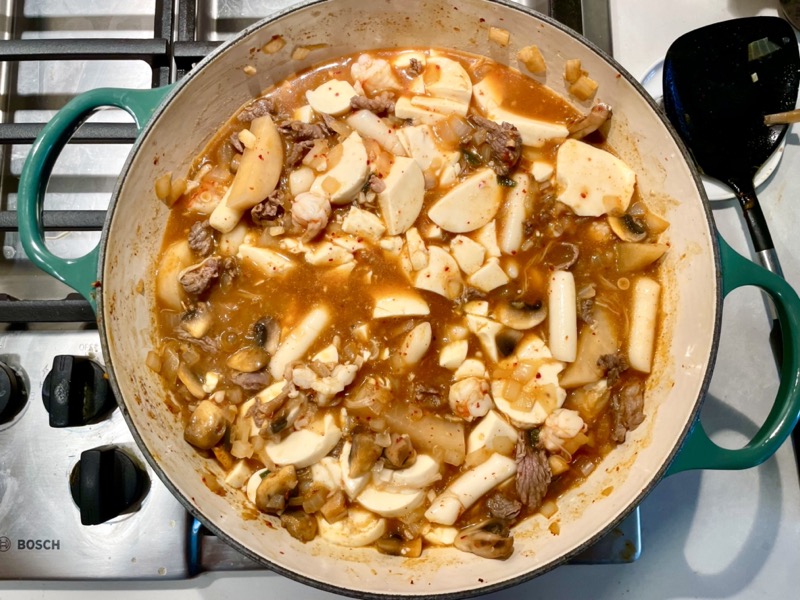- Make the sauce: While the shrimp and tofu steams, make the sauce by combining all the sauce ingredients (1/3 cup water, 1/2 tsp soy sauce, 1 tsp oyster sauce, 1/4 tsp sesame oil, 1/8 tsp white pepper, 1/8 tsp sugar, 1/2 tsp corn starch). Whisk until there are no lumps, then heat the sauce in a small pan on MED heat until it simmers and thickens (3-5 minutes) then turn off the heat.