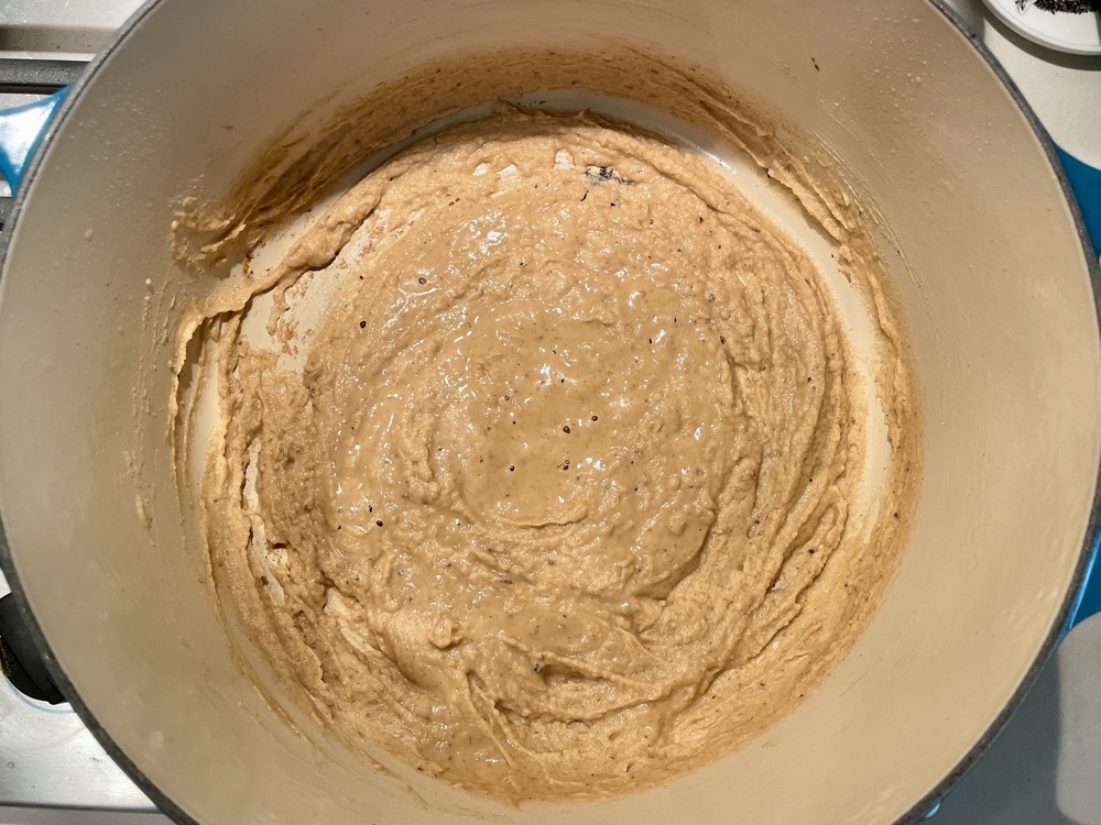 Next add in the white miso paste and mix well until there are no clumps and sauté for 3 minutes to slightly caramelize the miso.