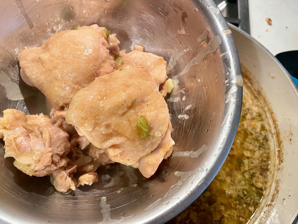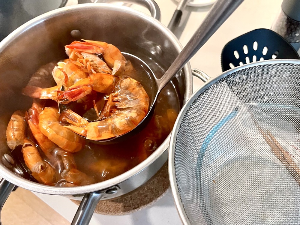 Add in the 1 cup heavy cream and the white part of the sliced scallions. Let the soup come to a simmer then add in the fish pieces (from step 1). Continue to simmer until the fish is flakey and cooked (~5 minutes).
