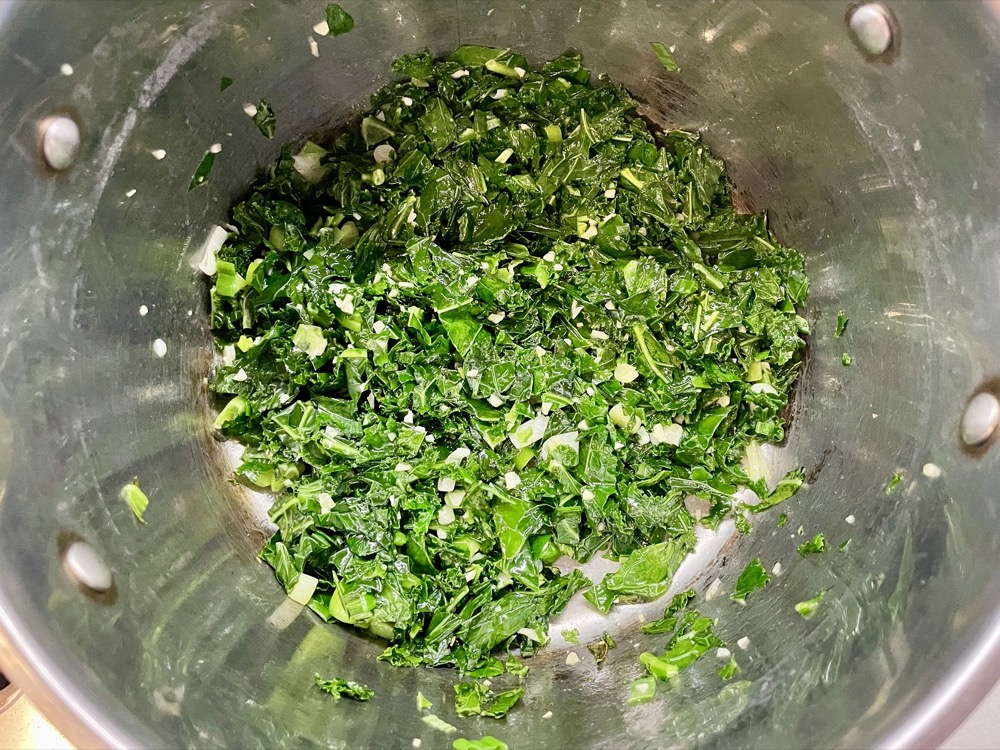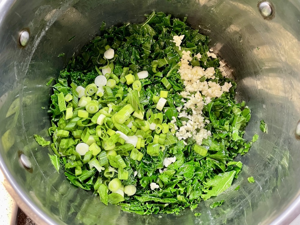 Next add in the white miso paste and mix well until there are no clumps and sauté for 3 minutes to slightly caramelize the miso.