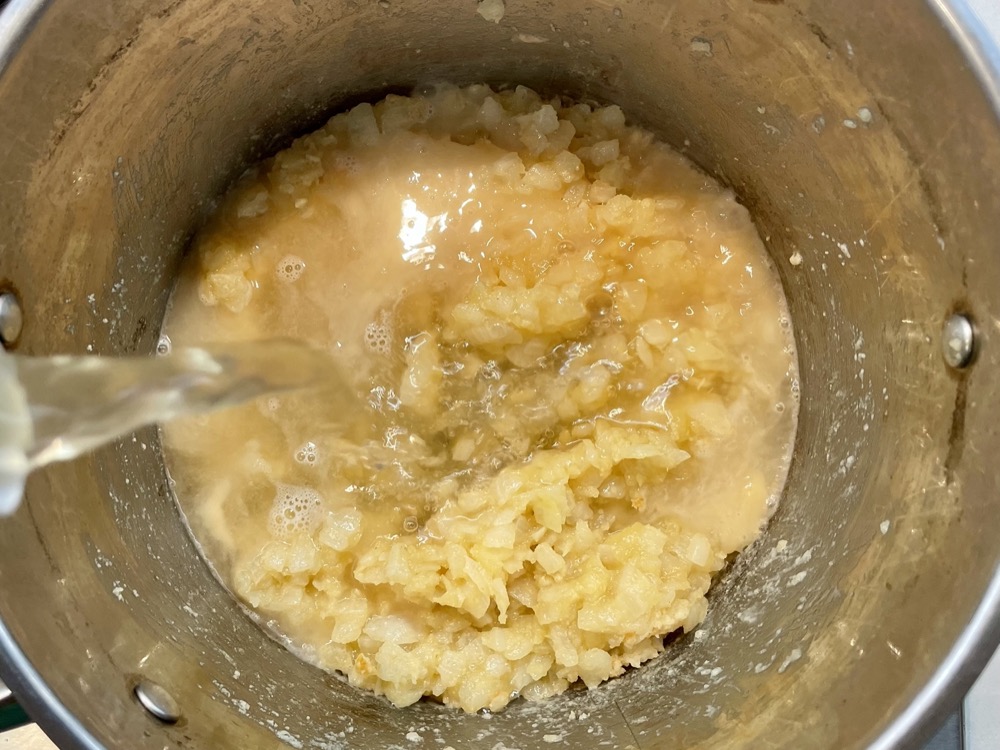 While the carrots are baking, make the brown butter: In a saucepan on MED heat, add the butter to the pan and occasionally stir until you get browned bits on the bottom then remove from heat into a separate bowl to cool.