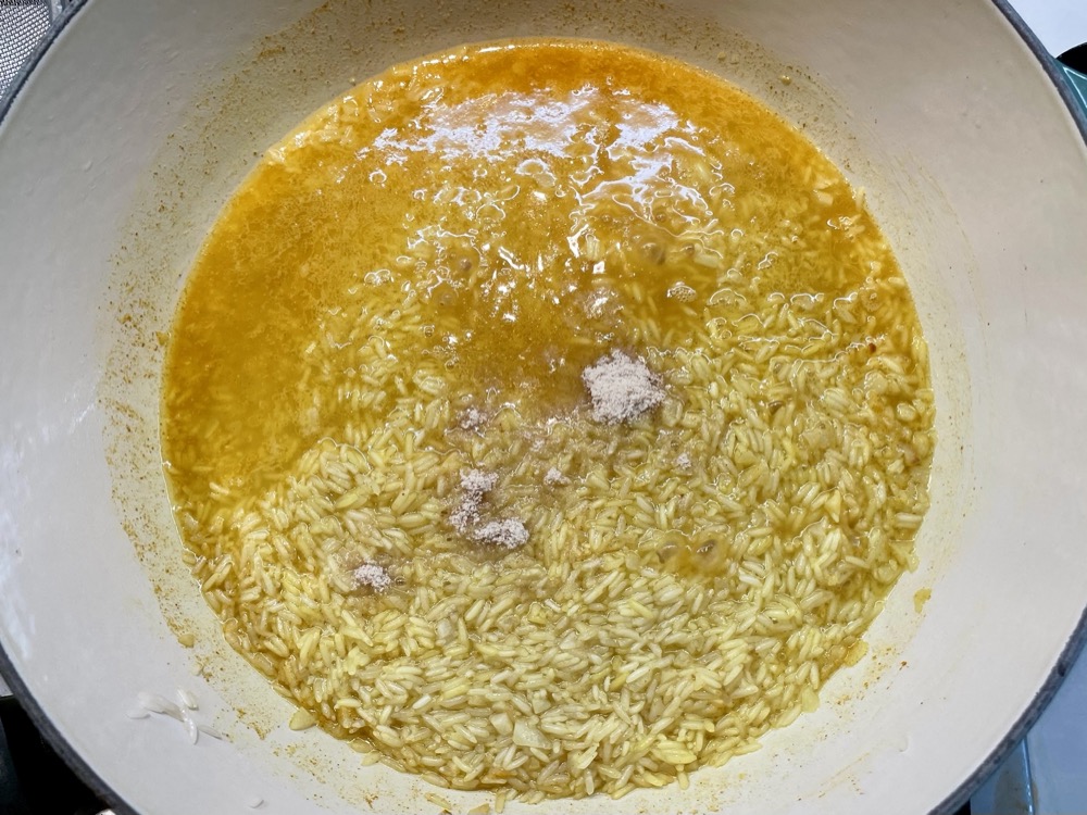 - Add 1.5 Tbsps water and continue whisking until emulsified then reduce the heat to the lowest setting to keep warm until ready to use.